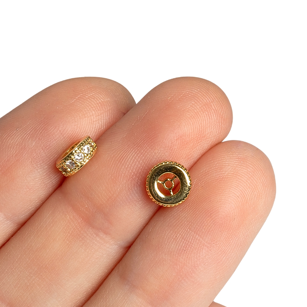 • Rondelka korálek 6mm zlatý s bílými zirkony