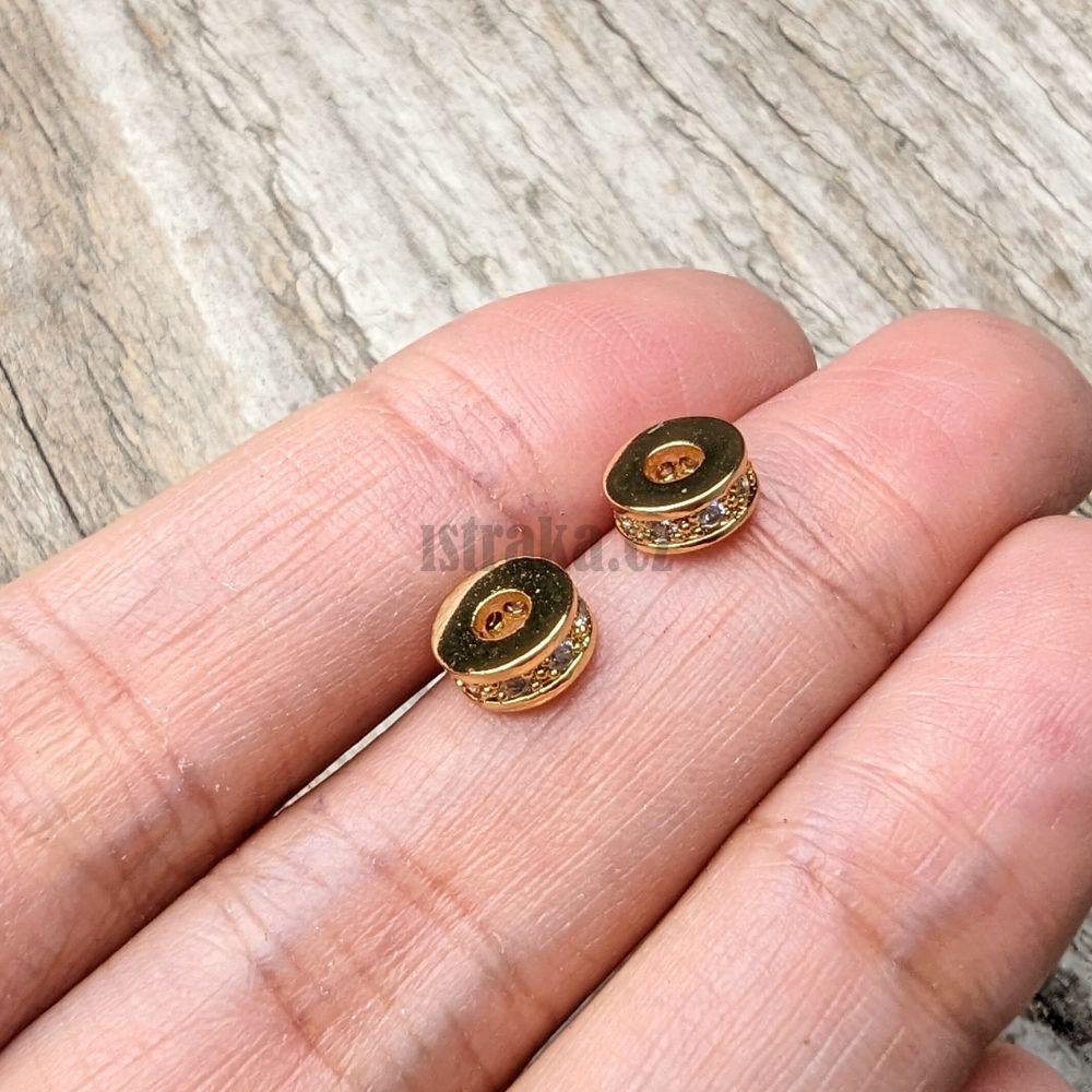 • Rondelka korálka 7x3mm zlatá s bielymi zirkónmi 1