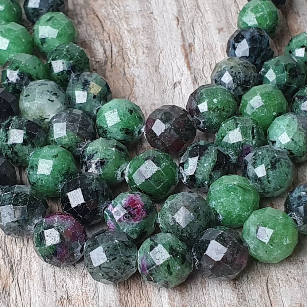 Rubín v zoisitě korálky 8mm broušené půlšňůra