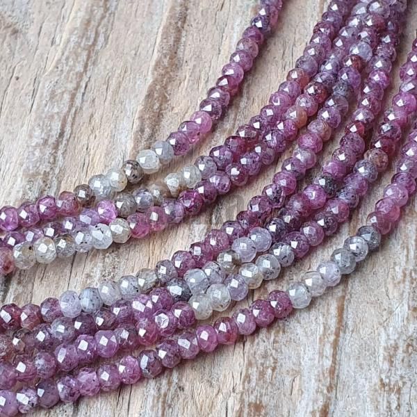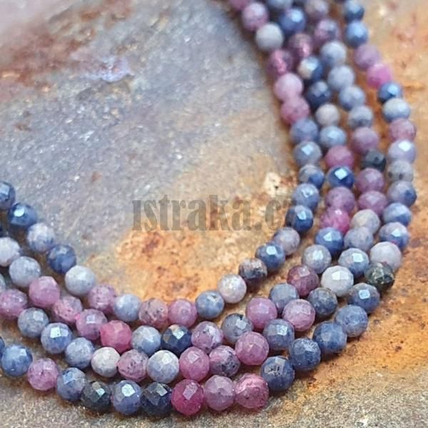Půlšňůra namixovaných vzácných kamenů rubín a safír v pěkných jemných pastelových odstínech. Kamínky mají vybroušený povrch. Z jedné korálkové půlšňůry vytvoříte 1 náramek na běžně velkou ruku (okolo 18,5 - 19cm).