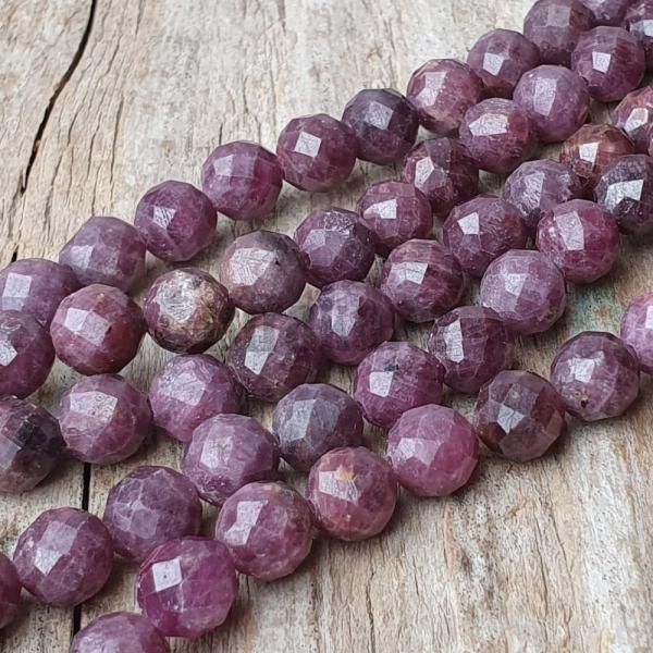 Fasetované korálky z přírodního drahého kamene rubín v syté teplé vínově červené barvě.