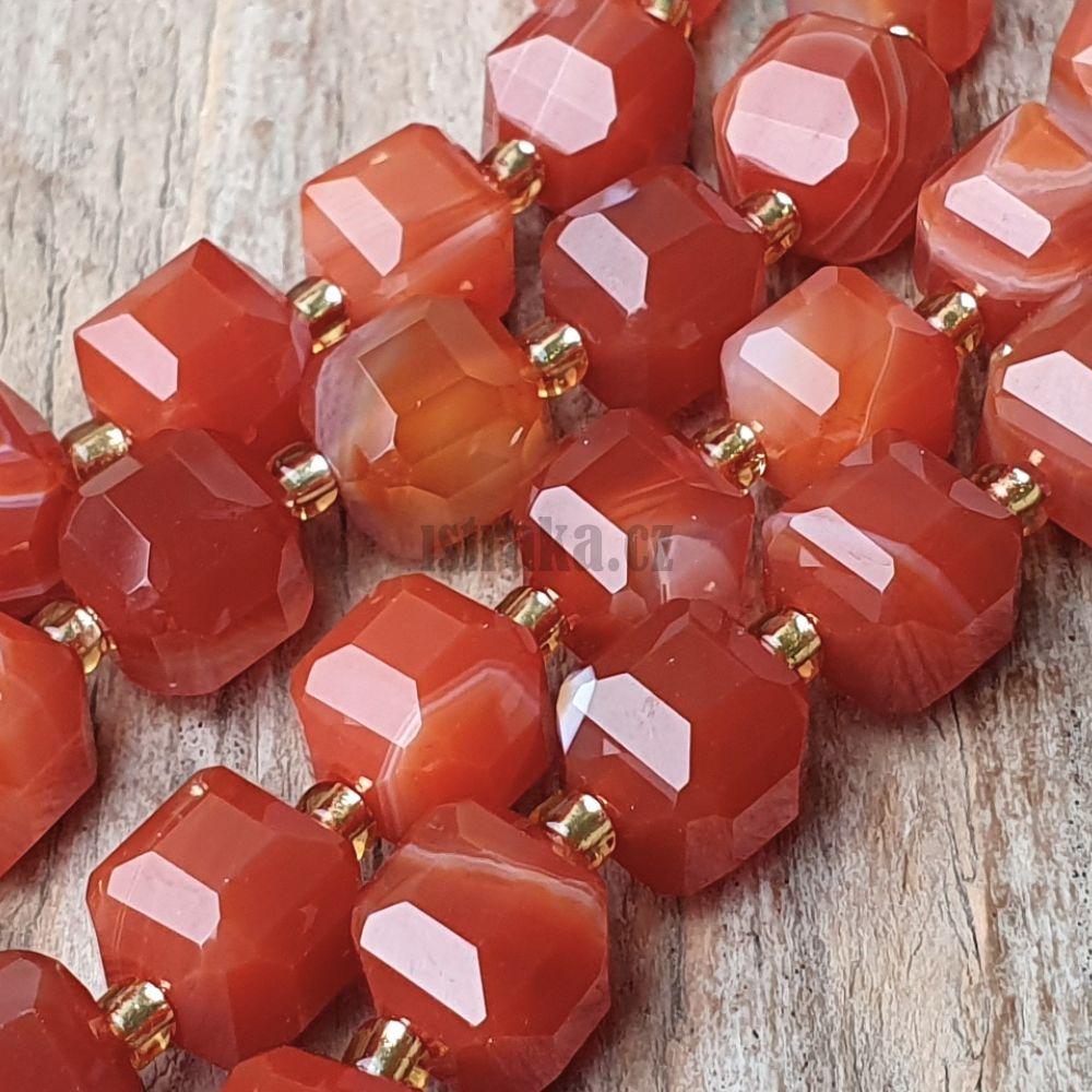 - Sardonyx korálky 8mm kostky broušené půlšňůra