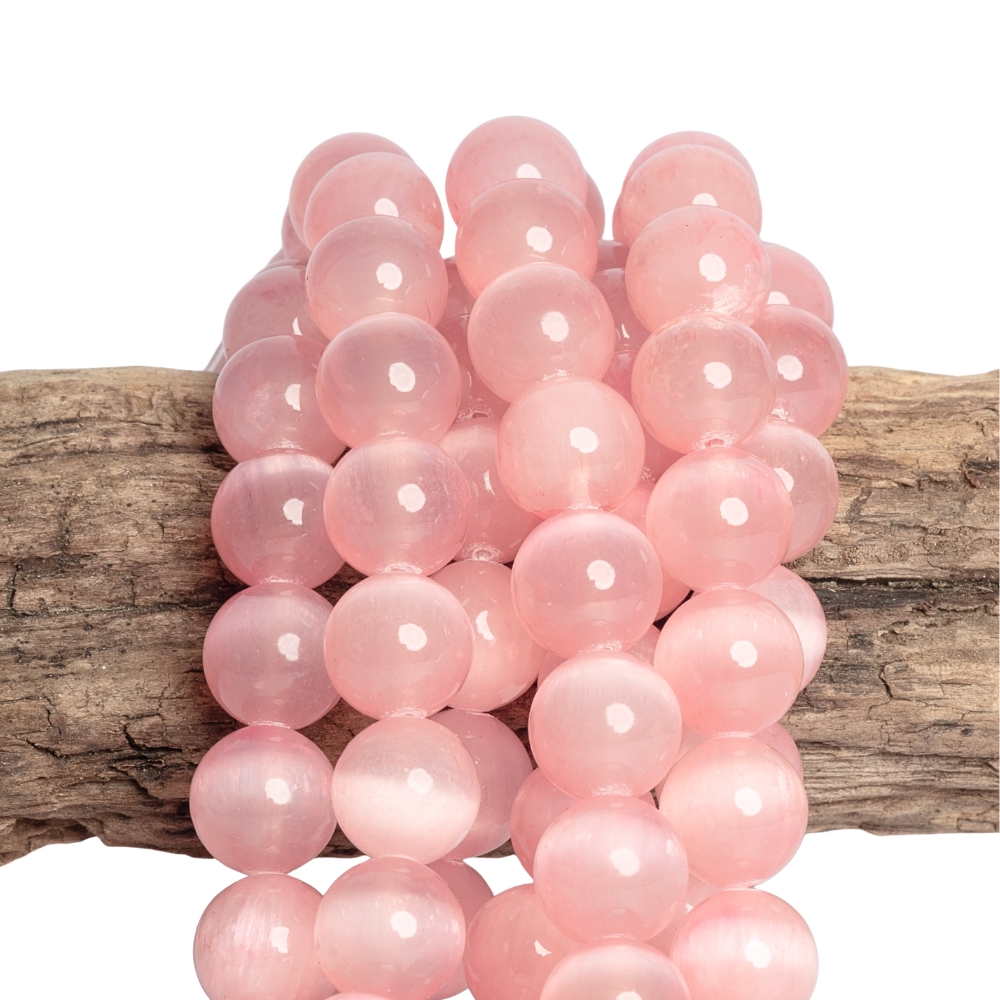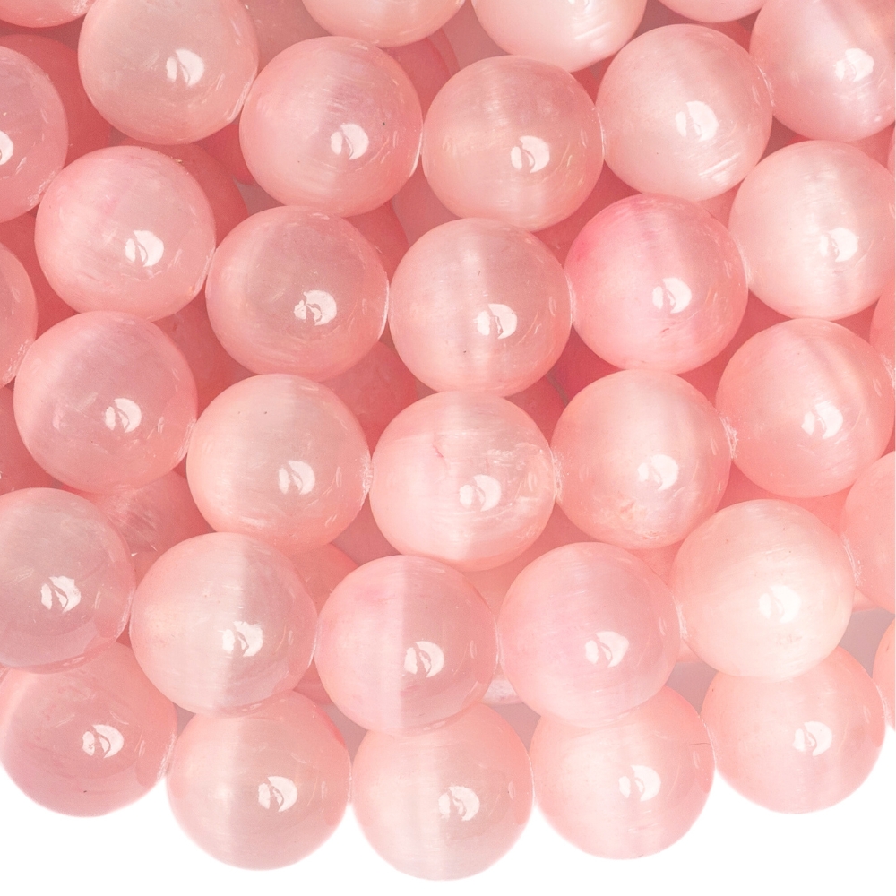 • Selenit korálky 10mm světlerůžové půlšňůra