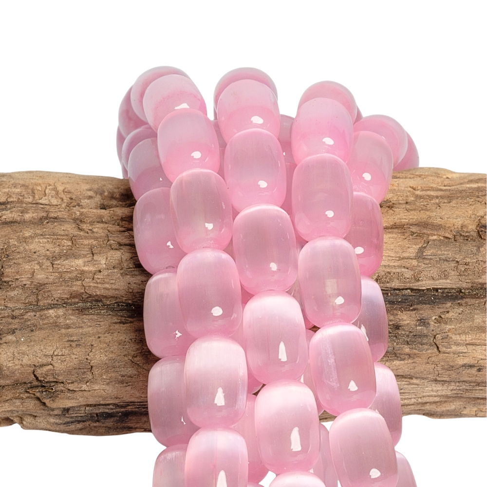 Selenit korálky 8x12mm soudky růžové půlšňůra