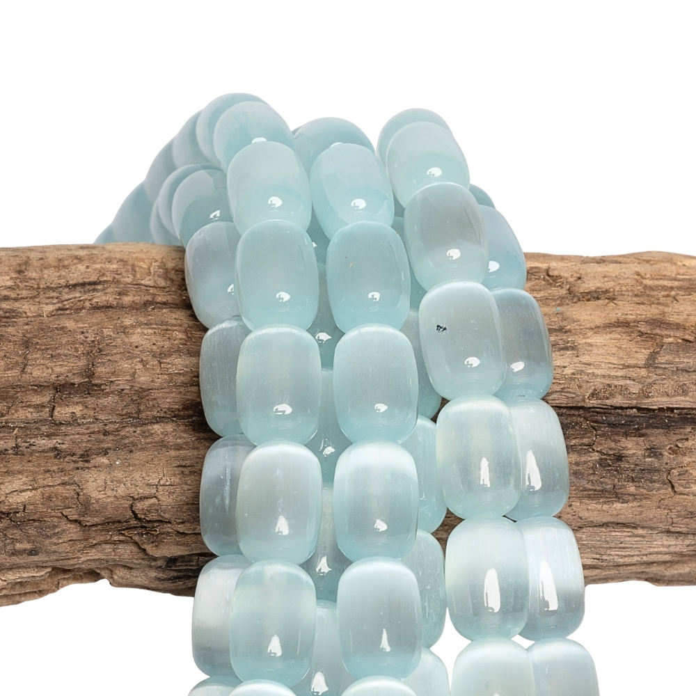 Selenit korálky 8x12mm soudky světlemodré půlšňůra