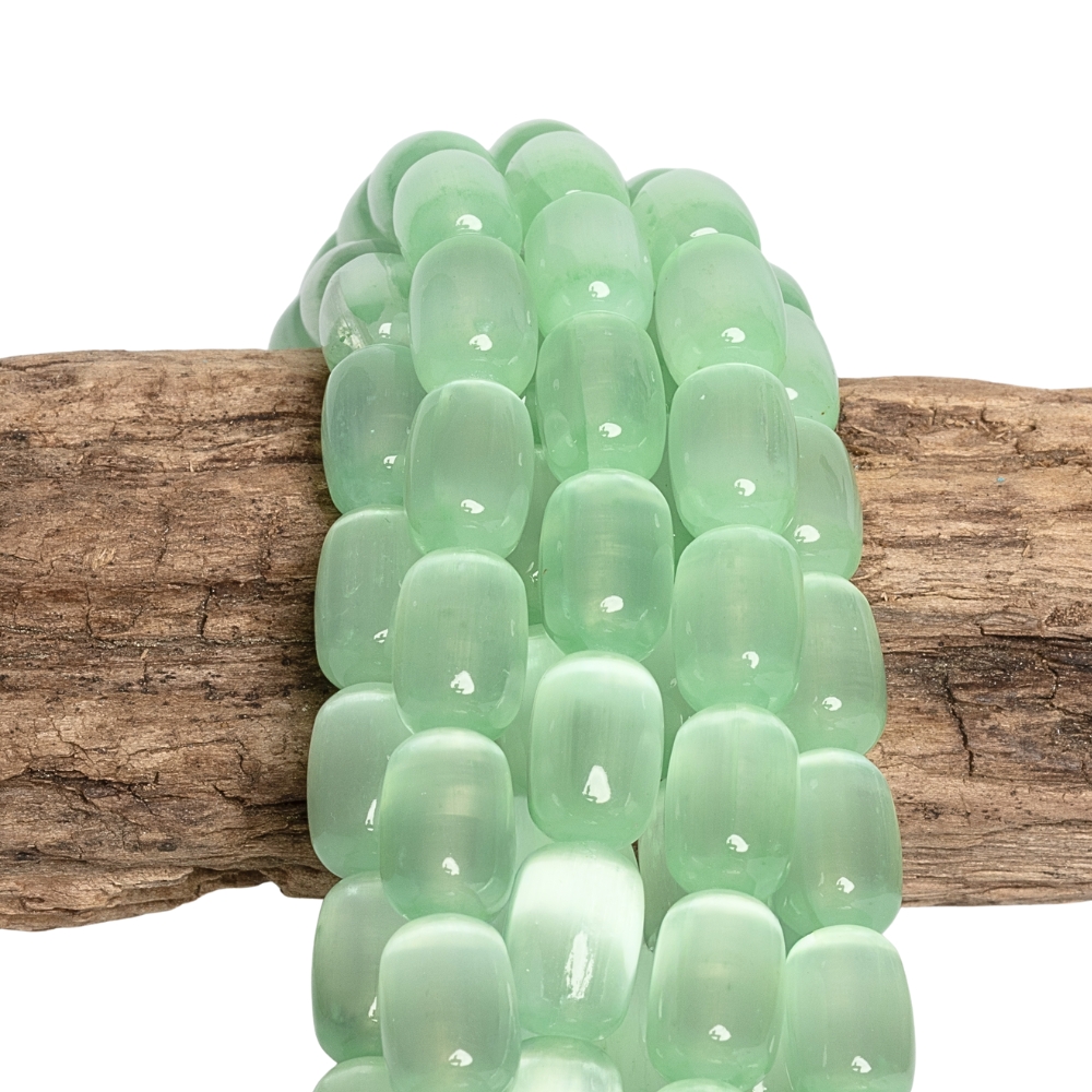 Selenit korálky 8x12mm soudky světlezelené půlšňůra