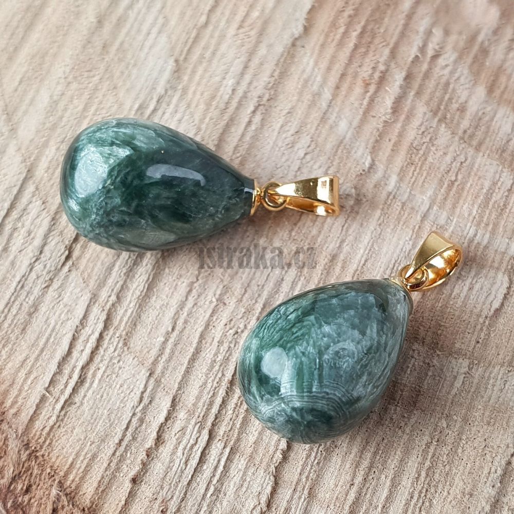 • Serafinit přívěsek 10x17mm kapka se zlatou šlupnou z nerezové oceli