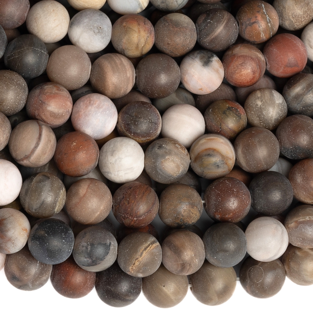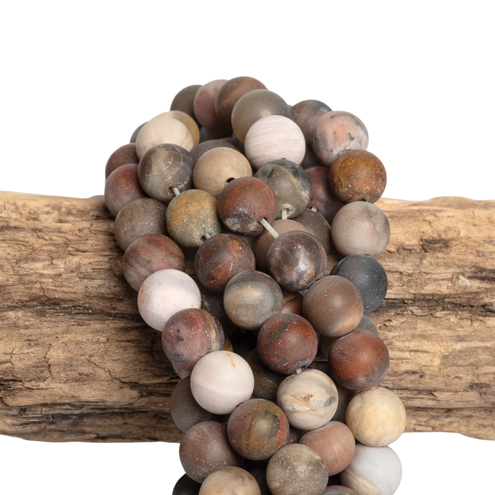 • Skamenělé dřevo korálky 8mm matné šňůra