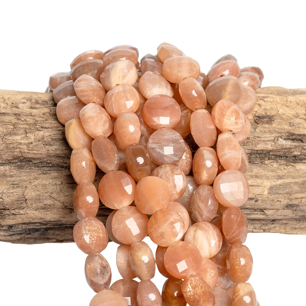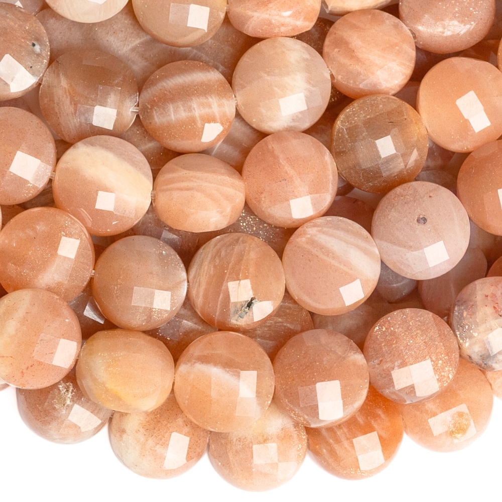 - Sluneční kámen korálky 8mm penízek půlšňůra