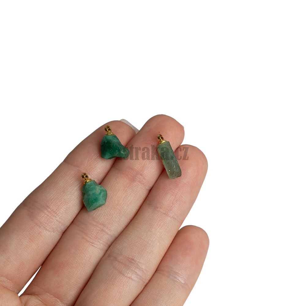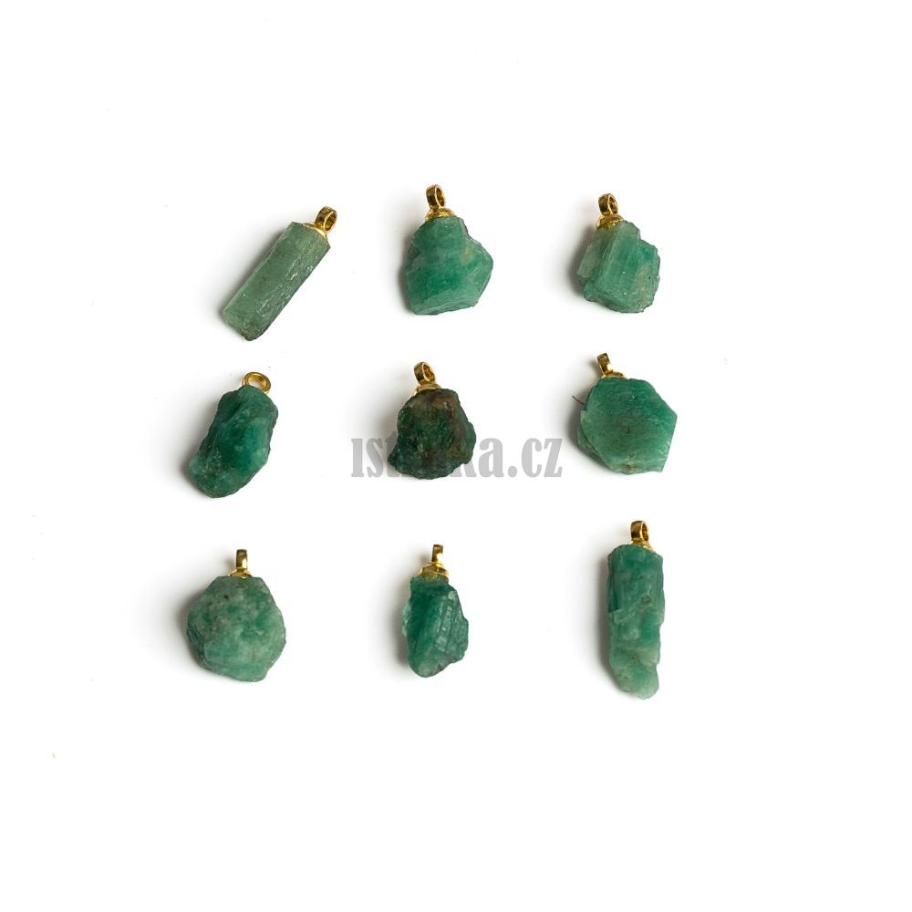 • Smaragd surový minipřívěsek se zlatým očkem z nerezové oceli