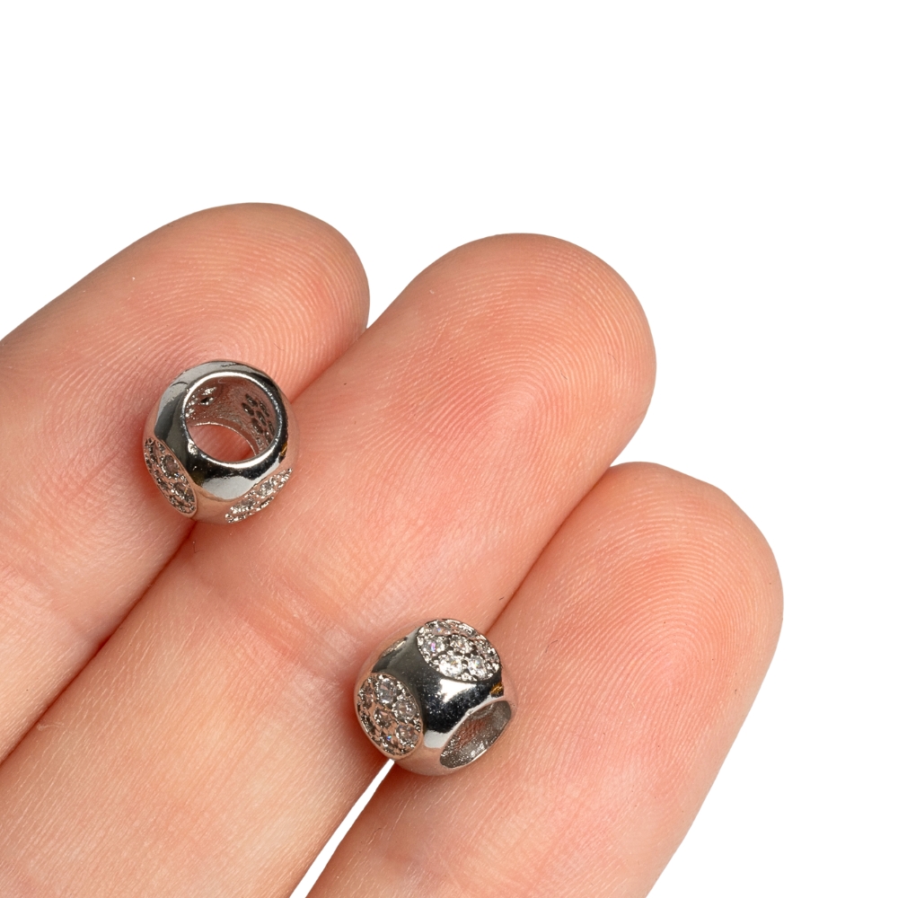 Soudek korálek velkodírový stříbrný s bílými zirkony