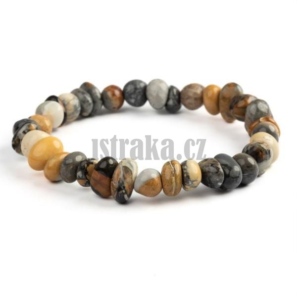 Náramek z přírodního minerálu citrínu s velikostí korálků 8 mm a lesklým povrchem. Náramek je na elastické šňůrce a je ideální zejména k znamením jako blíženci, lev a panna.
