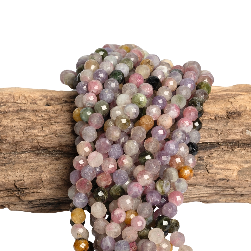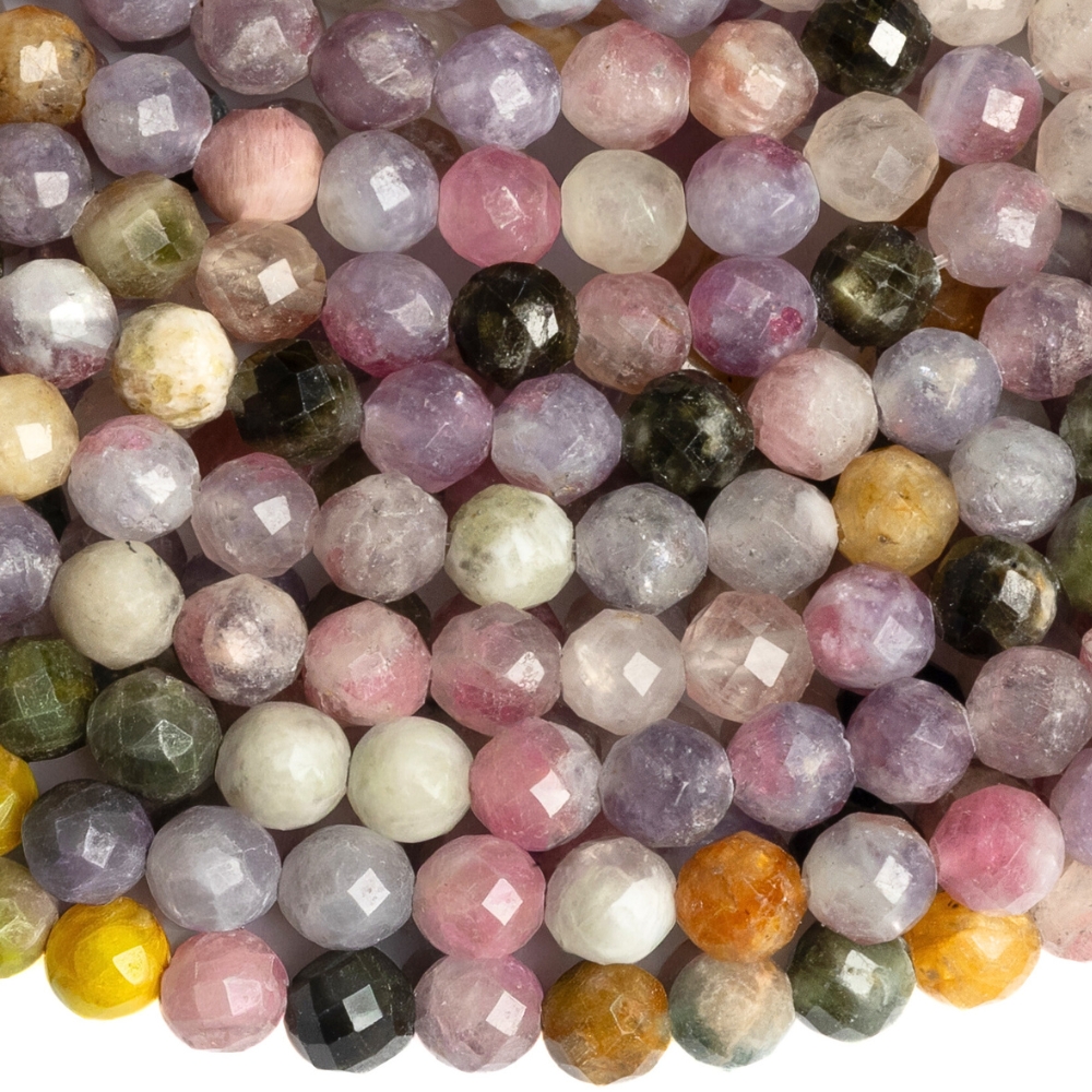 - Turmalín korálky 4mm mix barev broušené půlšňůra