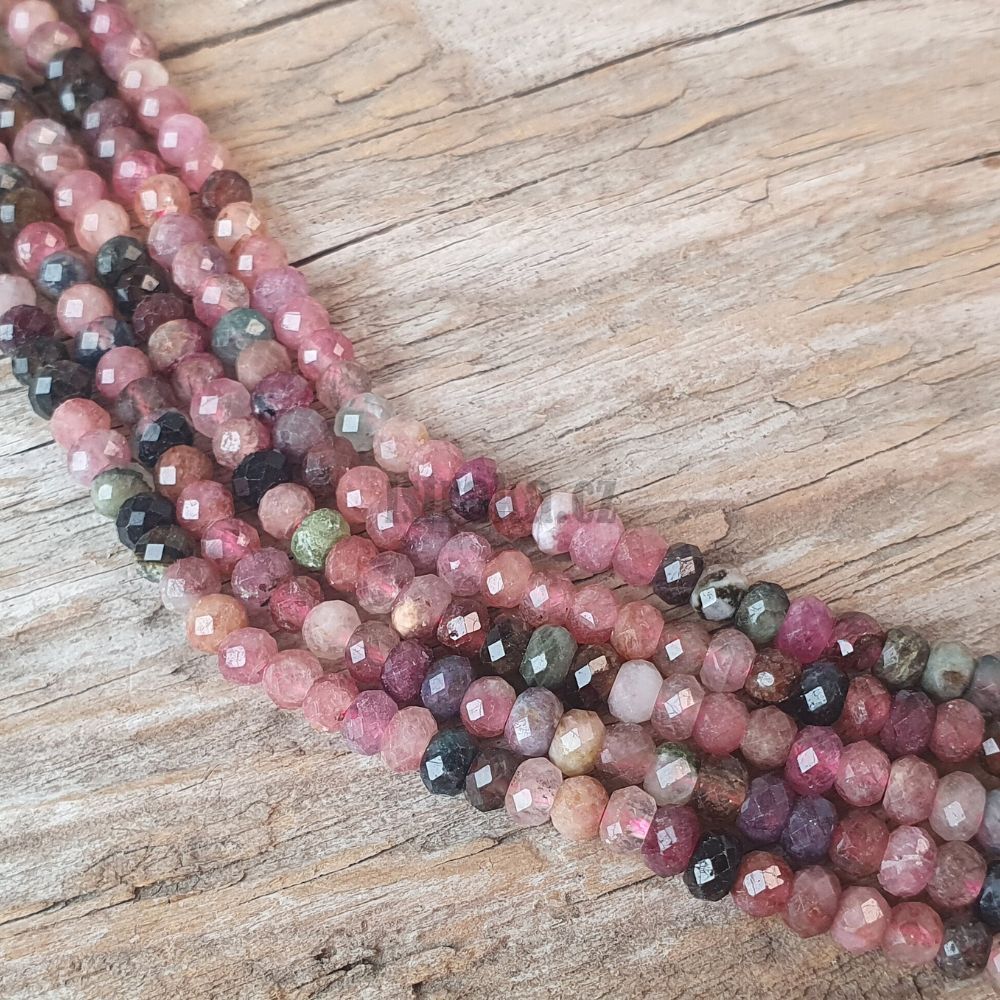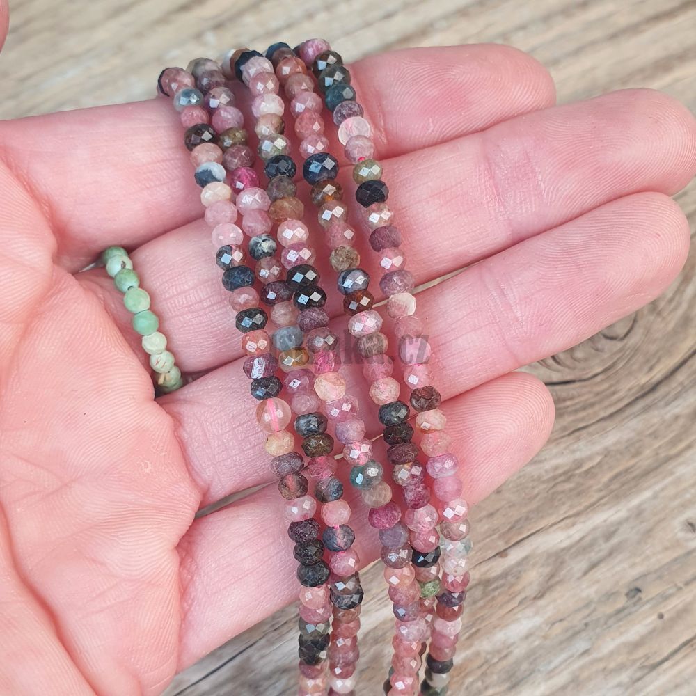 • Turmalín mix barev korálky 4x3mm broušené rondelky půlšňůra