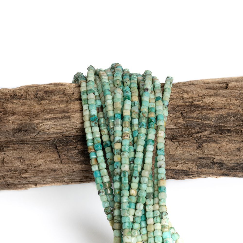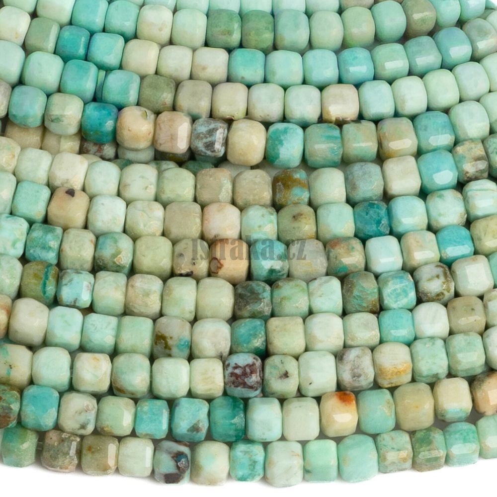 - Tyrkys Peru korálky 2,5mm kostky broušené půlšňůra