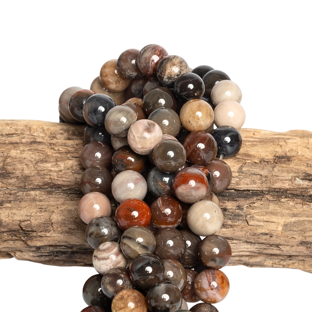 - Zkamenělé dřevo korálky 8mm šňůra